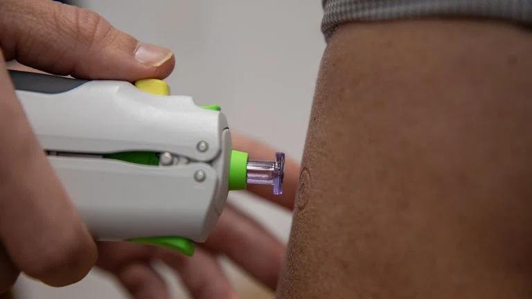 ويتم أخذ جرعة هذا اللقاح من خلال وضع اللقاح في جهاز صغير، ثم يتم إلصاق جزء بلاستيكي منه بجلد الجسم، في منطقة الذراع، وعندئذ، يتم الضغط والدفع، حتى يدخل اللقاح عن طريق الجلد