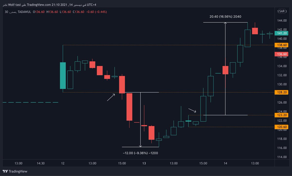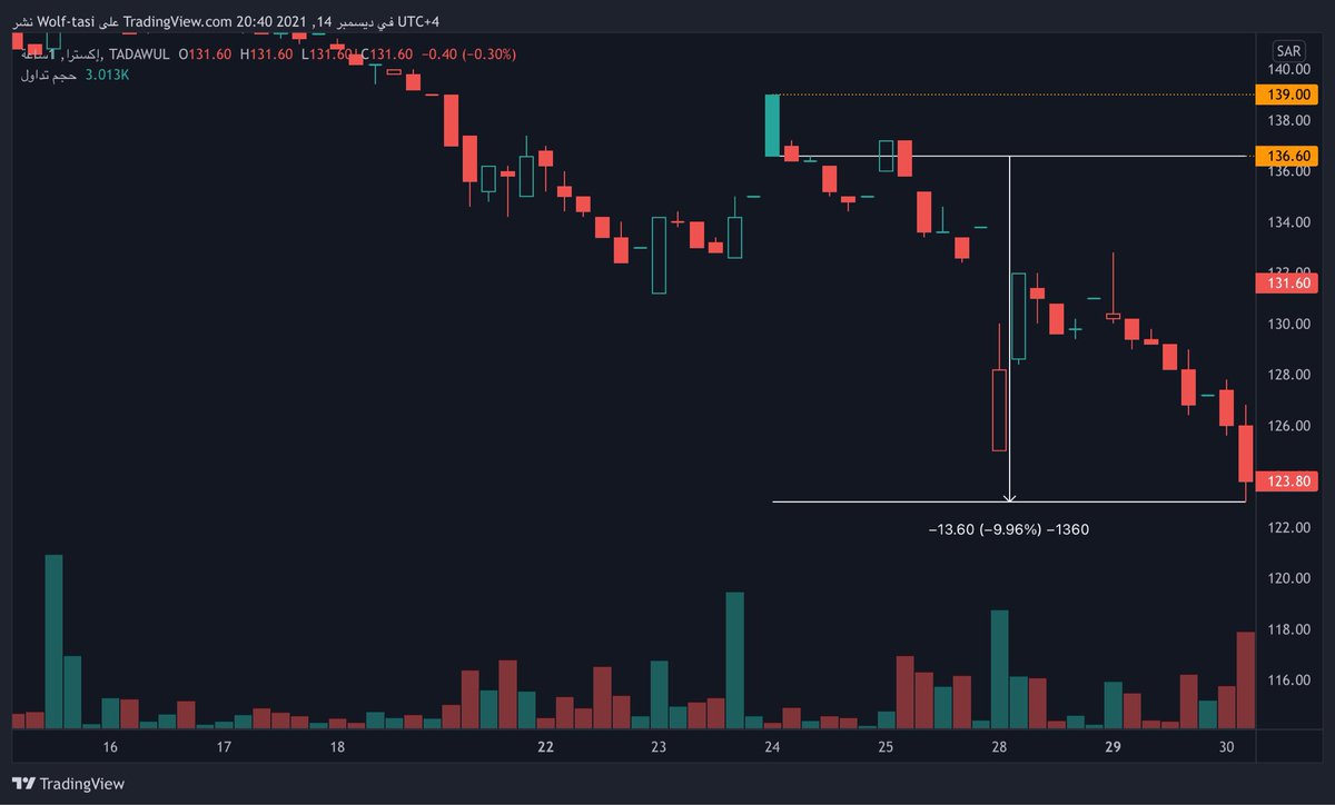 تتكون عندما تغلق الشمعة ادنى من سعر افتتاحها