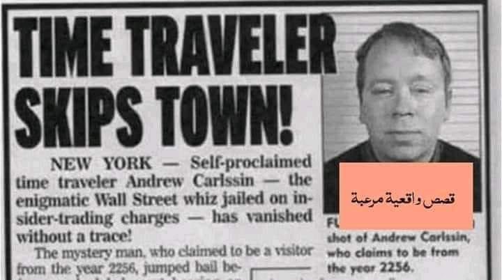 4️⃣قال أنه جاء من المستقبل, وبالتحديد من سنة 2256,لهذا يعرف كل الشركات التي ستربح والتي ستخسر.لم يصدق مكتب التحقيق الفدرالي ادعاءه واتهموه بالجنون والكذب,وقرروا حبسه لحد اكتمال التحقيقات اللازمة عنه,لكن الغريب هو أنه لم يُعثر على أي معلومة عن أندرو في السجلات, ⤵️