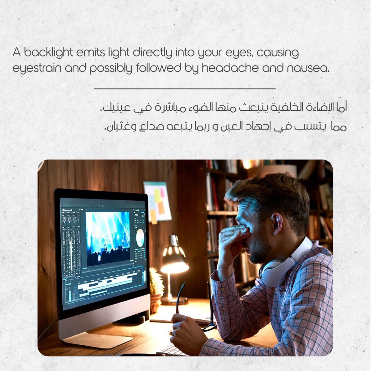 القراءة الإلكترونية من أجهزة الهواتف الذكية واللوحيات وأجهزة الكومبيوتر؛أمر مُضرّ للعين للغاية، لأن هذه الشاشات غير مُخصصة للقراءة الطويلة التي تجهد العين وتسبب لها الجفاف.