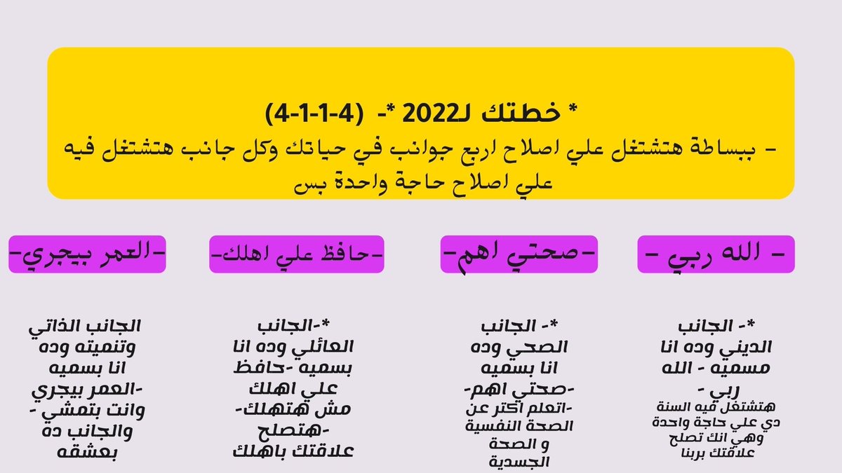 - ببساطة هتشتغل علي اصلاح اربع جوانب في حياتك وكل جانب هتشتغل فيه علي