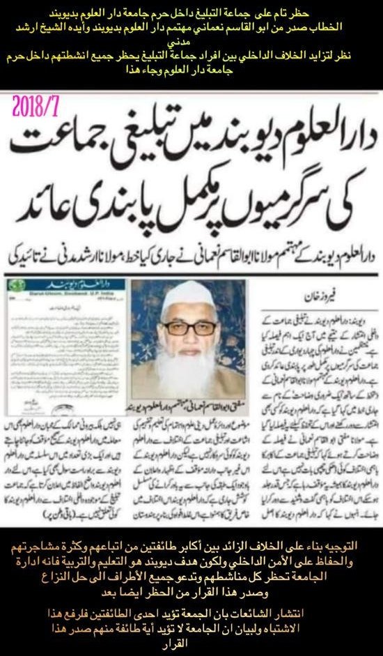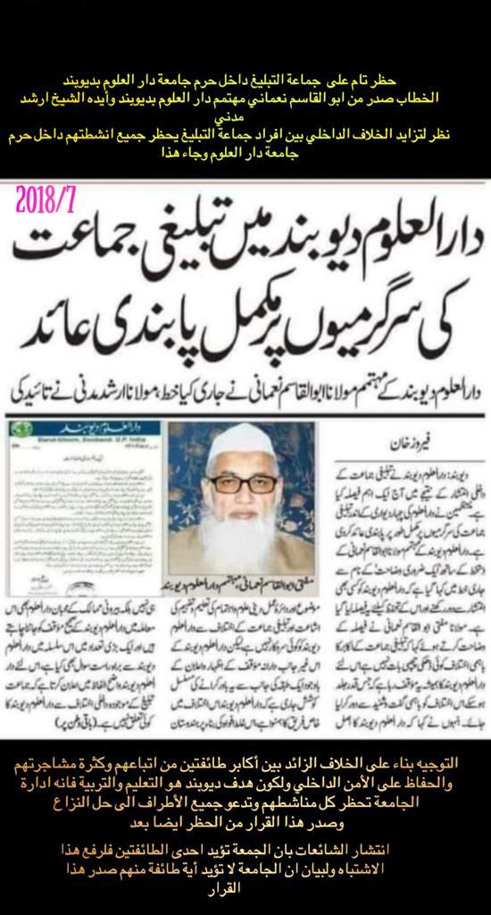 حظر #جامعة_دار_العلوم_ديوبند لانشطة #التبليغ كان قبل ثلاث سنوات..!