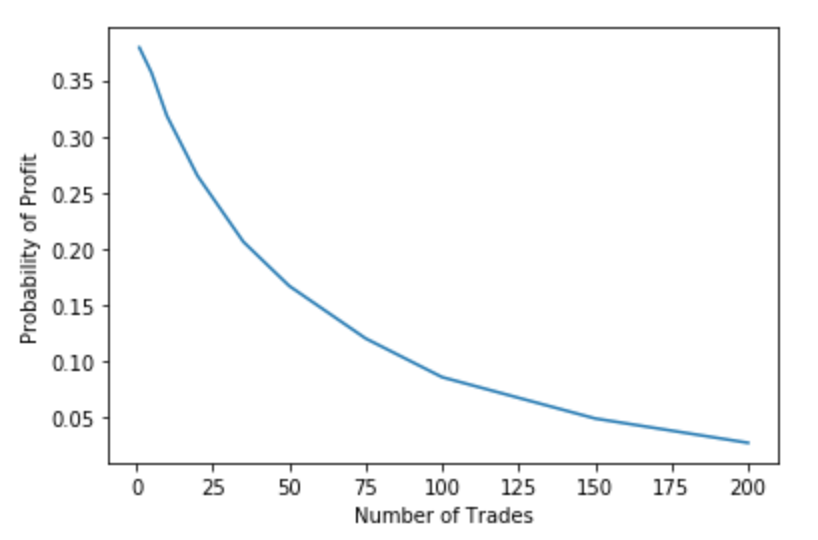 قررت أفحص الموضوع عن طريق إجراء تجربة: ويش كان بيصير لو العديد من الأشخاص اشتروا وباعوا الأسهم بشكل عشوائي تمامًا لفترة من الزمن؟ كم بتكون نسبة اللي حققوا ربح من هذي المجموعة؟