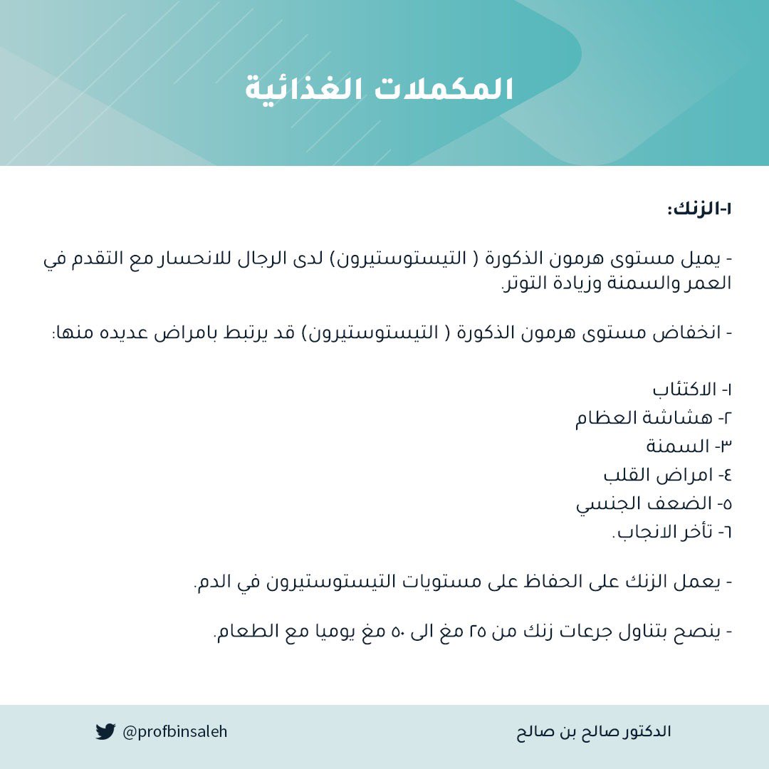 في التغريدات القادمة سنستعرض بعض المكملات الغذائية واثرها الايجابي على صحة الرجل.
