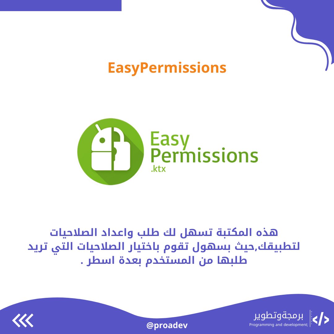 هذه المكتبة تسهل لك طلب واعداد الصلاحيات لتطبيقك,حيث بسهول تقوم باختيار الصلاحيات التي تريد طلبها من المستخدم بعدة اسطر .