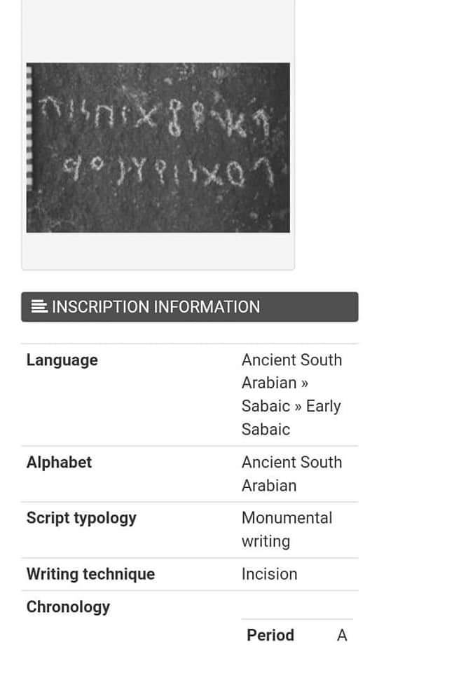 1 - نقش سبئي من وادي يلا من محافظة مأرب اليمنية من نقوش الفترة A و نقوش فترة A تعود إلى أواخر الألفية الثانية قبل الميلاد .