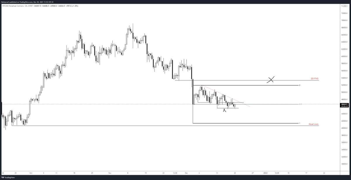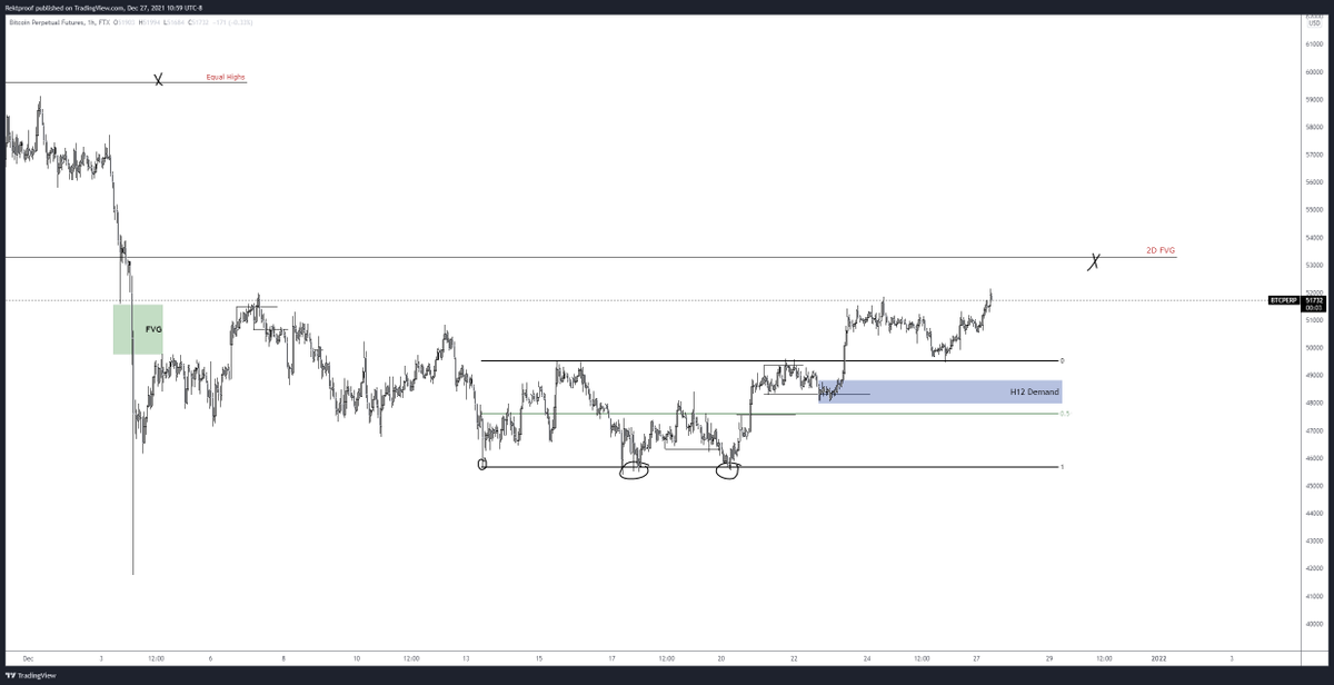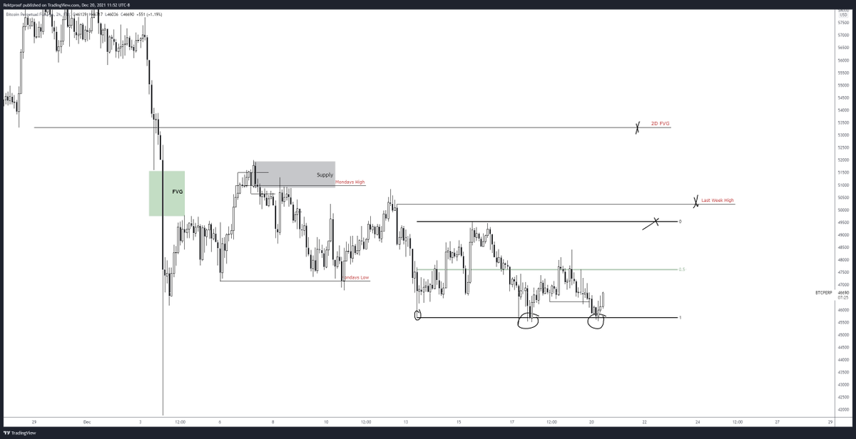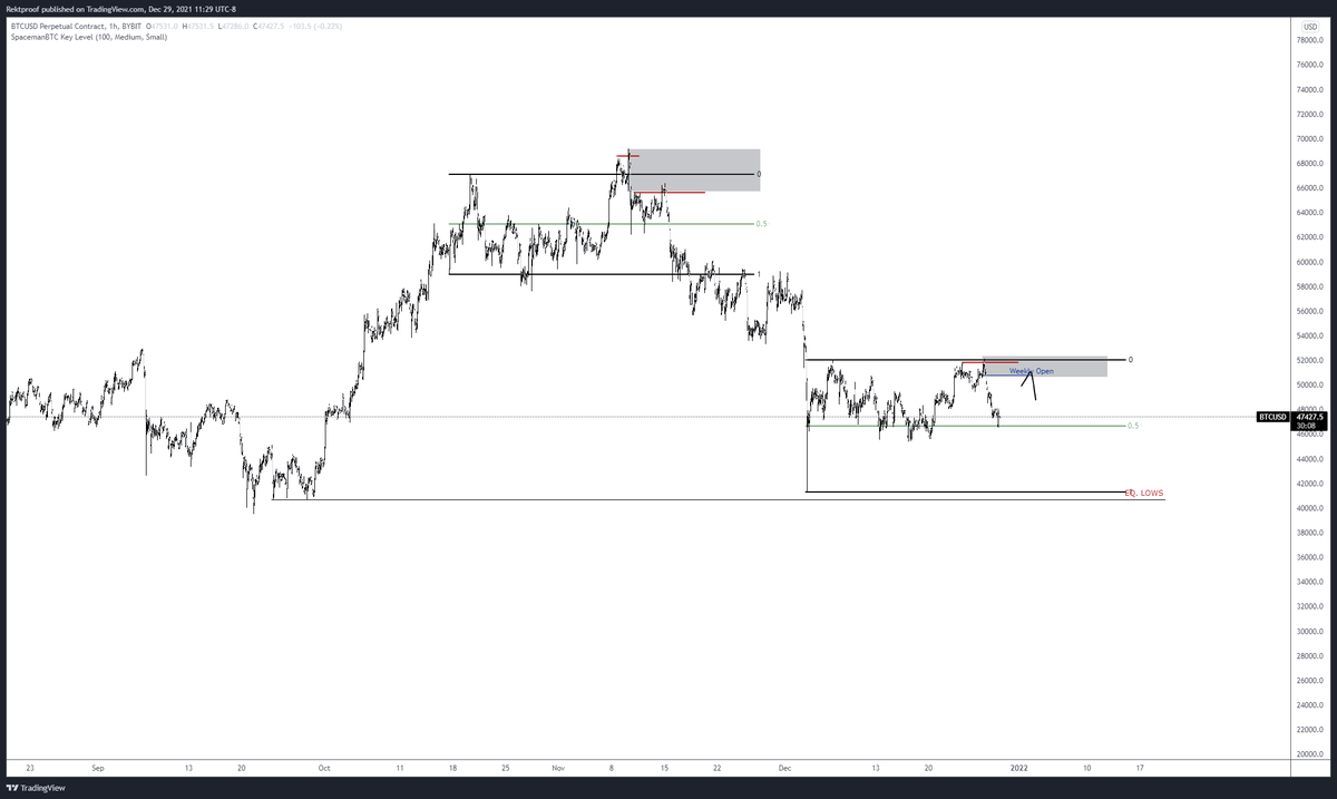 Range high taken out and looks like we might have a ltf range here near the EQ. Break above the 48ks for a move into that newly formed H6 Supply/Weekly open confluence.