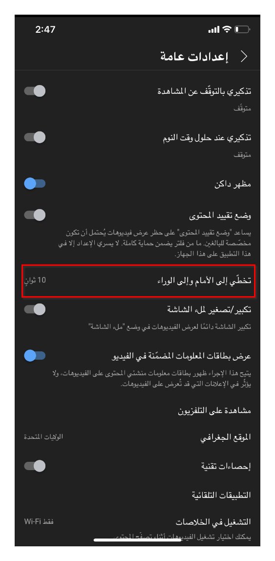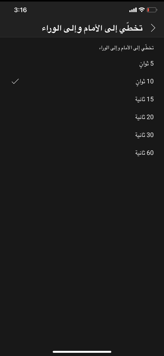 5⃣ تحديد المدة الزمنية التي يتم تخطيها عند الضغط مرتين على يمين الشاشة للتقديم و يسار الشاشة للتأخير