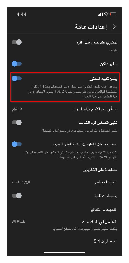 4⃣ وضع تقييد المحتوى لحظر المحتوى الغير لائق والخطير حيث مناسب تفعيله في أجهزة الأطفال