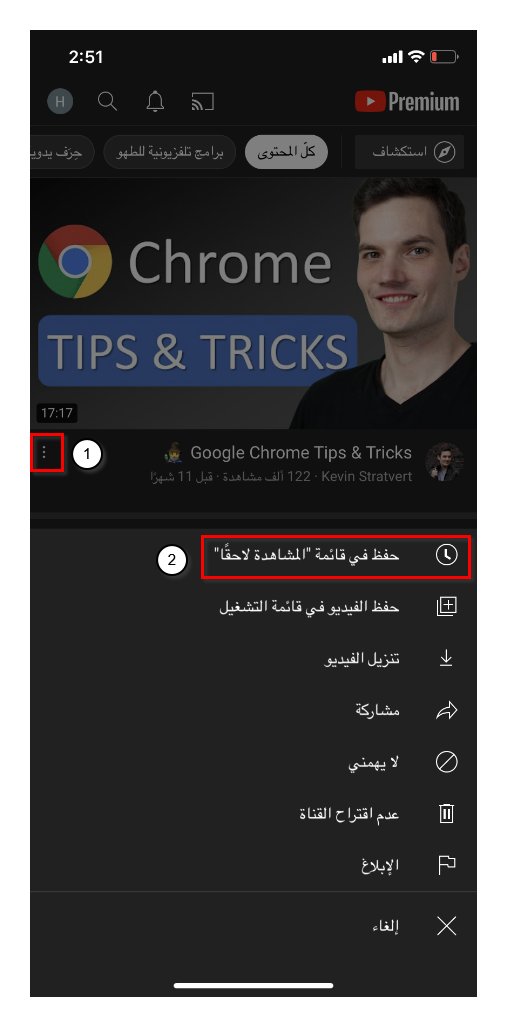 9⃣ خيار مشاهدة لاحقا يقوم بجمع المقاطع التي حفظتها في ألبوم المشاهدة لاحقا لكي تجدها بسهولة عندما تريد ذلك