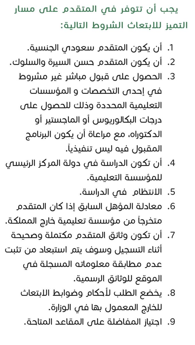 هل الانتظام شرط في ابتعاث التميز؟