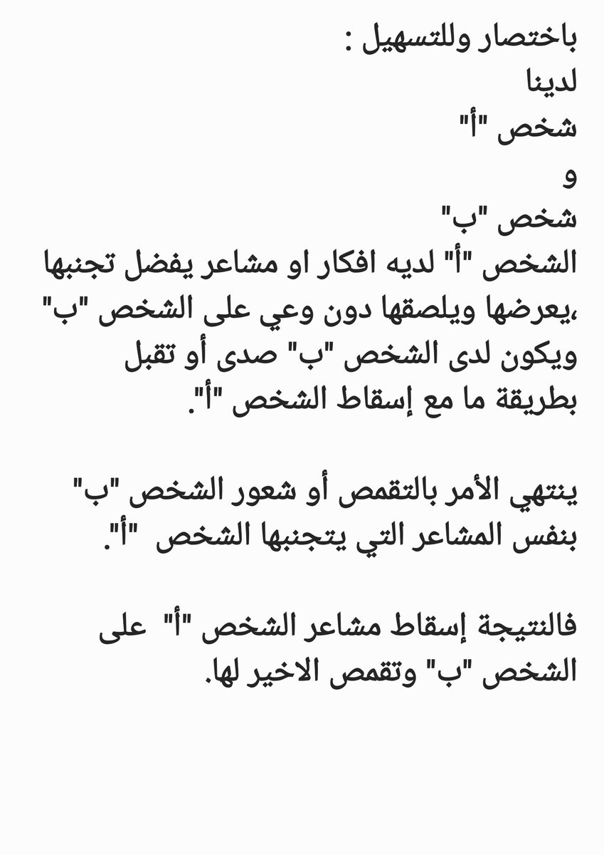 فالنتيجة إسقاط مشاعر الشخص "أ" على الشخص "ب" وتقمص الاخير لها.