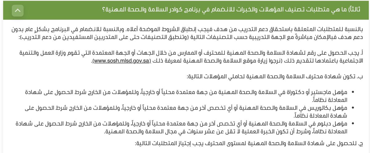- البرنامج مبادرة أطلقتها وزارة العمل والتنمية الاجتماعية بدعم من صندوق تنمية الموارد البشرية لدعم وتأهيل مختصين في مجال #السلامة والصحة المهنية وكذلك توجها من الدولة لسعودة #وظائف السلامة بنسبة 70% في يوم 1-1-2022 م، رابط الخبر والقرار: