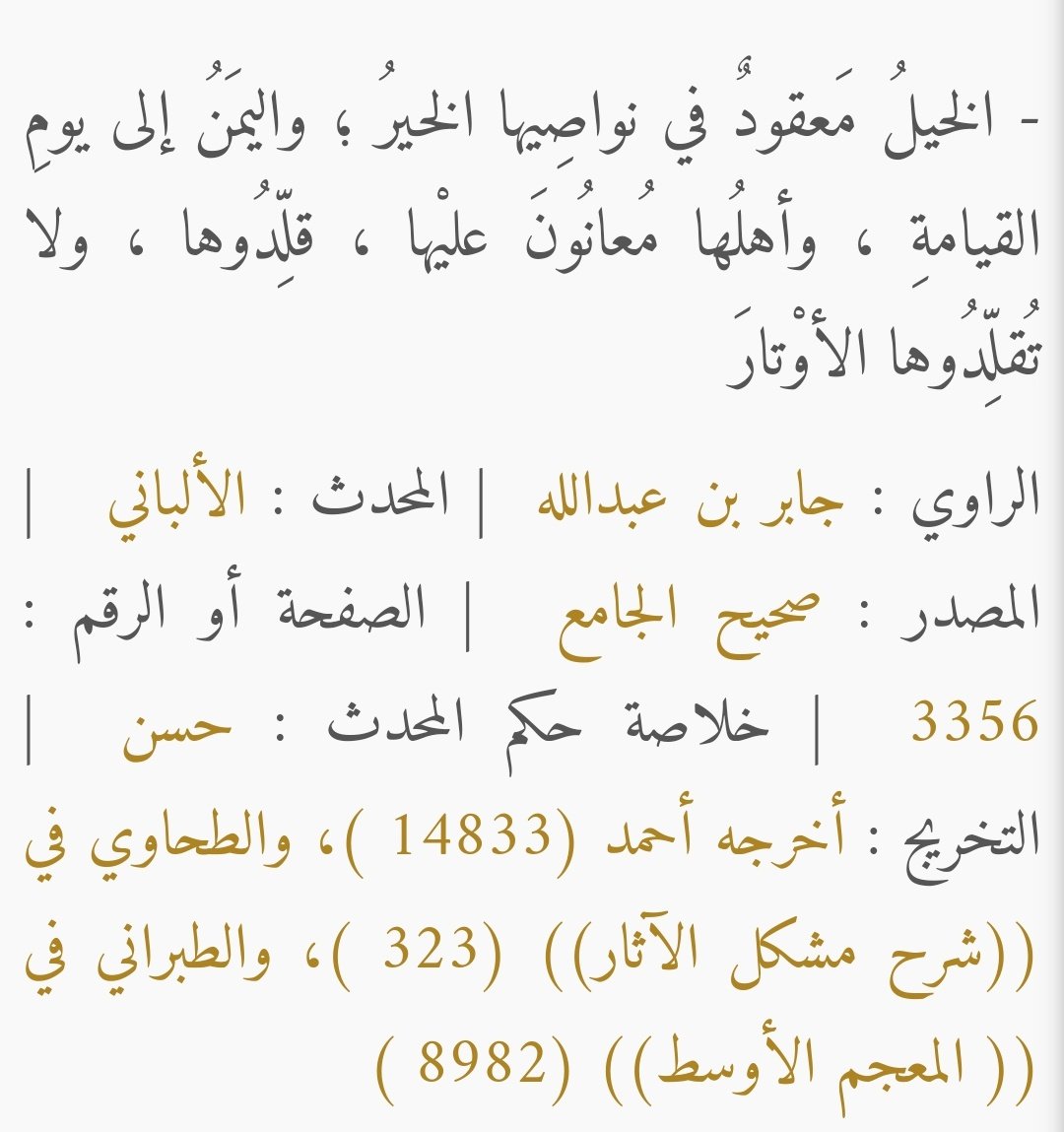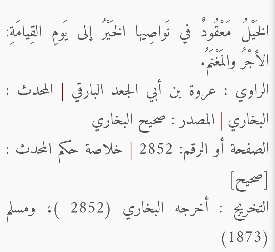 قال ذلك النّكراني أخ الملحد واليهودي والنّصراني : السنة النبوية تقول بأن الشؤم في المرأة والدّار و (((الفرس))) . النبي صلى الله عليه وسلم في السنّة النبوية المُطهّرة نسب الخير واليمن والبركة إلى (((الخيل))) .
