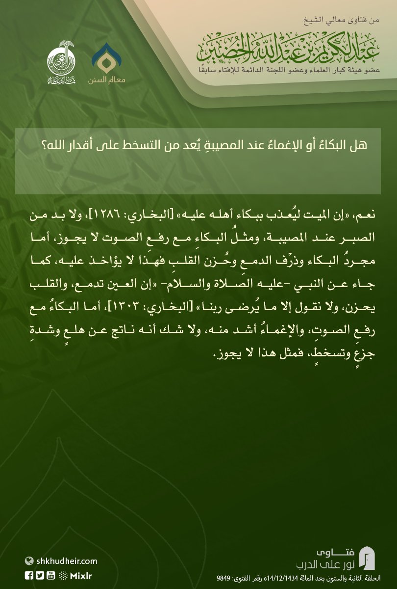 هل البكاءُ أو الإغماءُ عند المصيبةِ يُعد من التسخط على أقدار الله؟