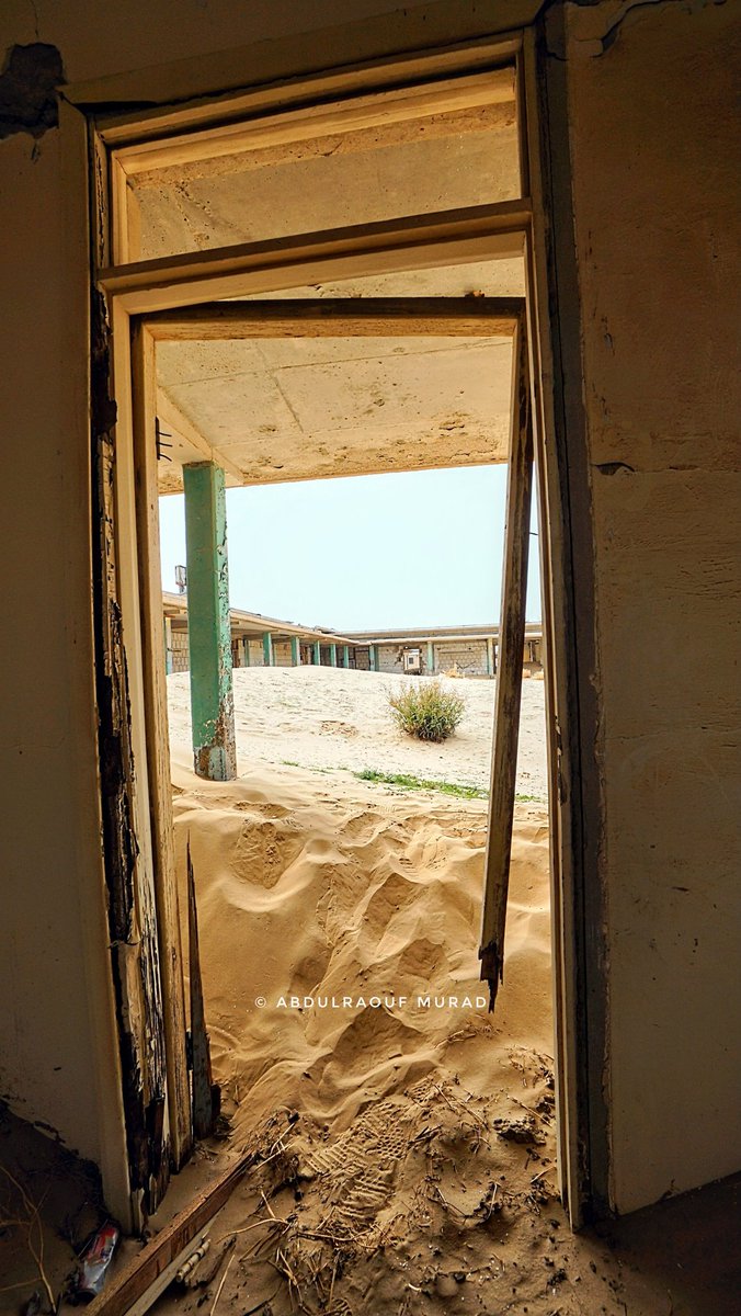 سلسلة تغريدات حول مدارس الوفرة التى تركت مهجورة بعد الغزو حتى غزتها الرمال وطمرت أجزاء منها