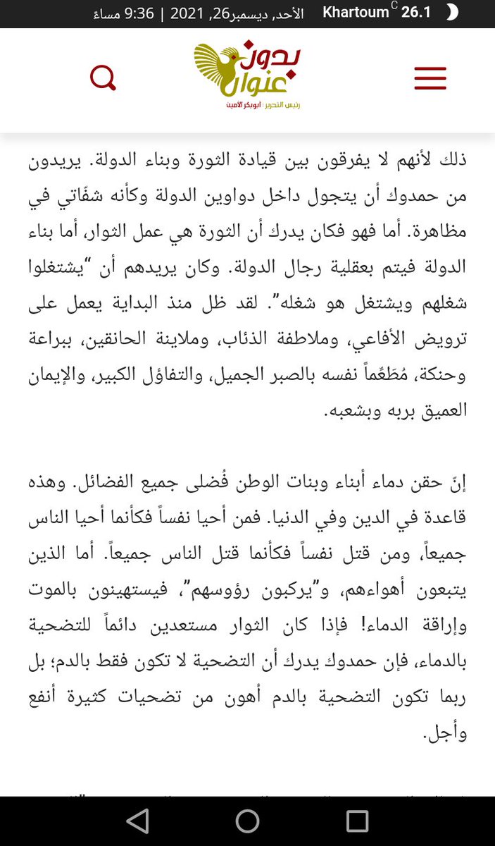 مقبل السنوات، دولةً-قِبلةً يؤمُّها الناس ويأتمّون بها. وسيذكر التاريخ، شاء من شاء وأبى من أبى، أن اللبنات التي وضعها هذا الرجل، خلال هاتين السنتين، ستظل هي الأساس الذي قامت/ستقوم عليه الدولة السودانية المدنية الحديثة.