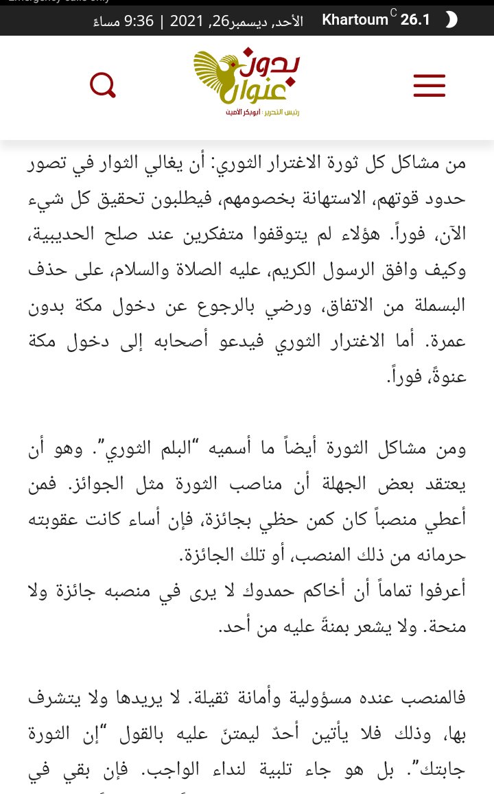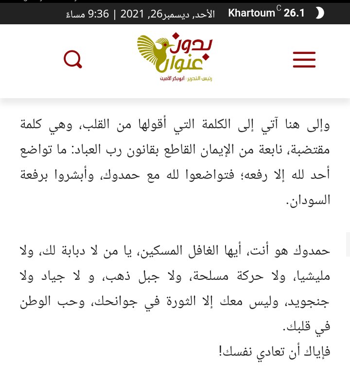 الذي لم يأتِ على ظهر دبابة، ولا ترافقه المليشيات، ولا يملك جبال الذهب، ولا تناصره الجياد والجنجويد، ولا يسنده بيت عز ونسب وحسب، ولا بيت مال وعيال وعقار، قد هزم بسماحته، وابتسامته، وتفاؤله، وحكمته، وببعد نظره، وتواضعه، انقلابَاً عسكرياً، قادته شرذمة ذات بأس مدججةً بالدبابات، +
