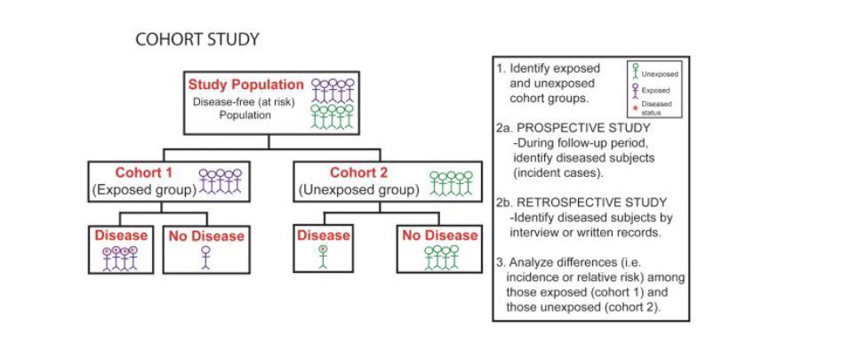 4️⃣ النوع الأول: ال cohort study، هي دراسة تتابع فيها مجموعة من الأشخاص (cohort) لمدة زمنية (تخلو) من disease or outcomes لحد ظهور exposure or event of interest.