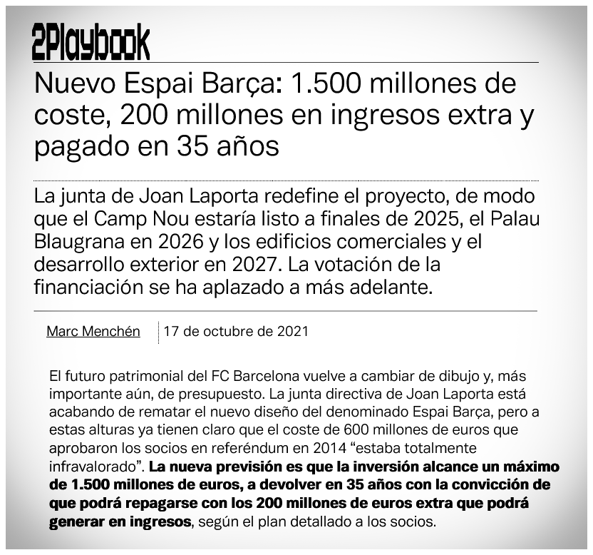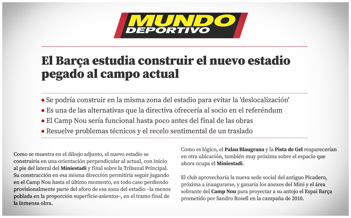 لهذا السبب كانت الخطوة الأولى والضرورية هي تقويم ميزانية المشروع ، لأنه وبكل أمانة الميزانية البالغة 420 مليون يورو المخصصة لتجديد الكامب نو لا تكفي لتنفيذ مشروع بحجم ملعب توتنهام الجديد أو ملعب برنابيو الجديد ، لذلك كان من الضروري تعديل ميزانية المشروع ككل 👇
