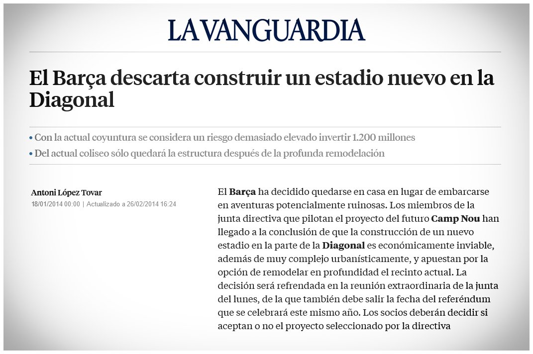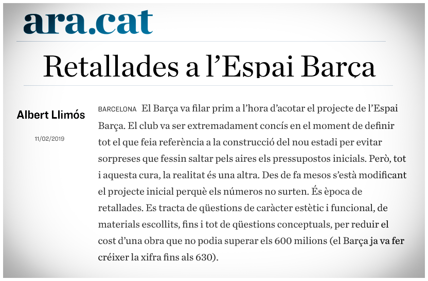 التغييرات التي أجراها لابورتا على المشروع مهمة ، لكنها وبكل صدق لا تبرر ارتفاع ميزانية تجديد الكامب نو من 420 إلى 900 مليون يورو