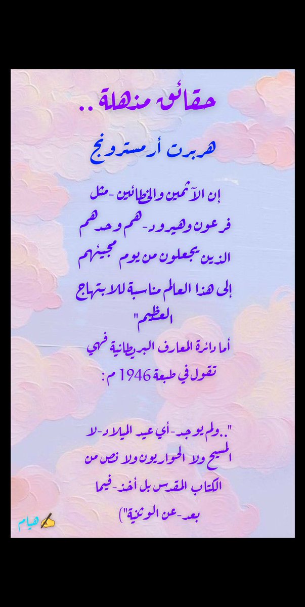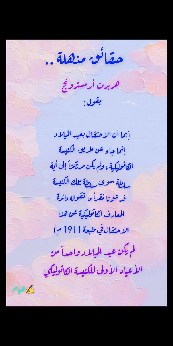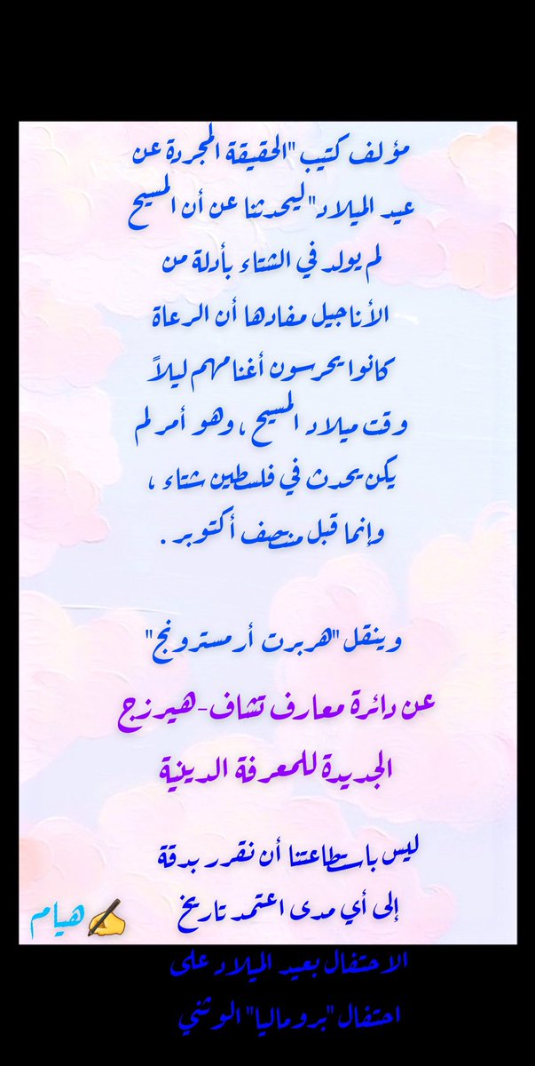 يؤكد بأدلة تاريخية أن #عيد_الميلاد هو احتفال وثني لا صلة له-لا من قريب ولا من بعيد-بالنصرانية أو المسيحية إن شئت وفي هذه "الحقيقة المجردة"