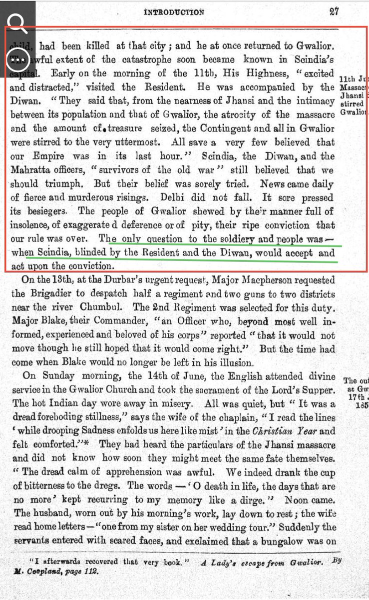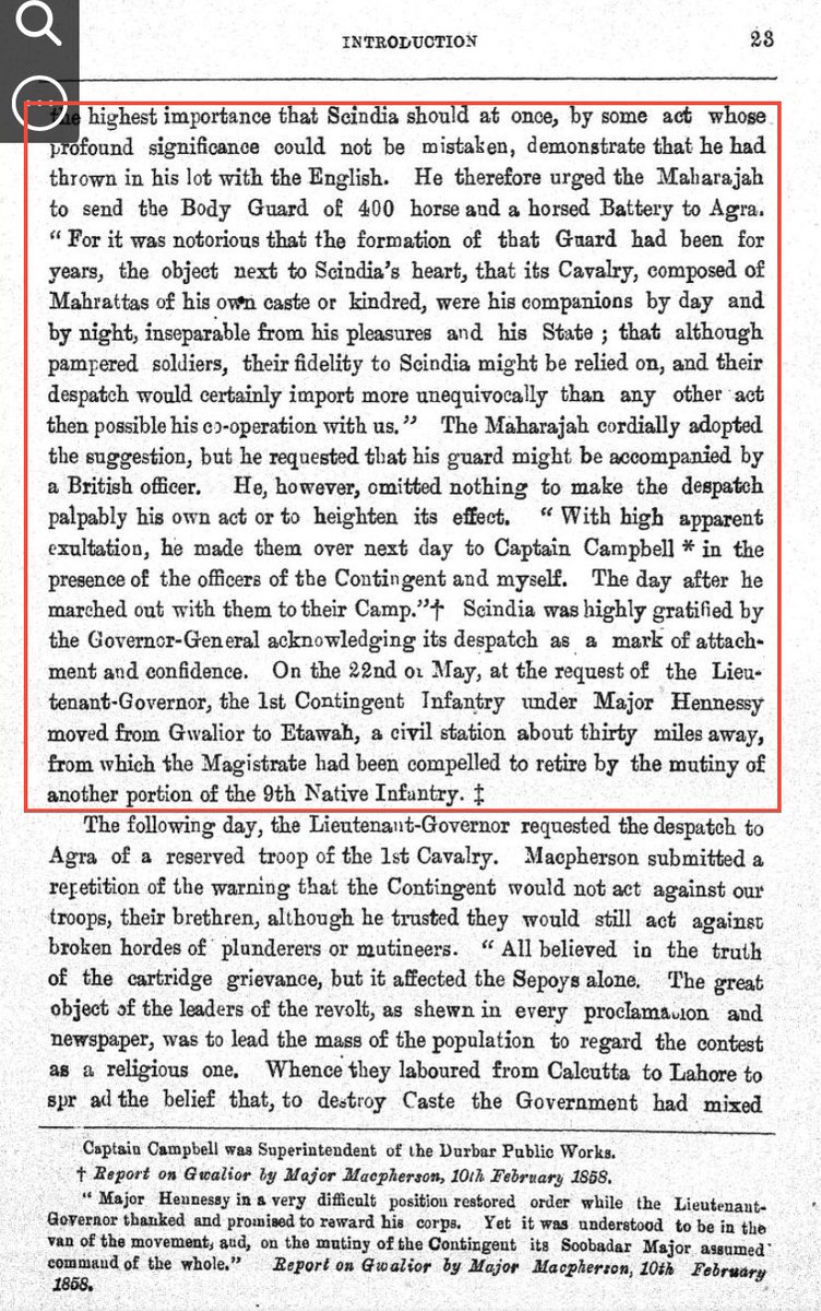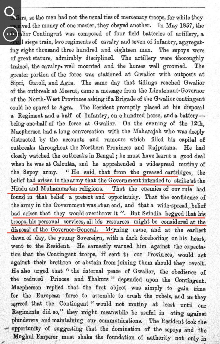 Scindia had fought the British as late as 1843 at Maharajpore but to say that Scindia did anything to help the mutineers in 1857 is pure Imagination !