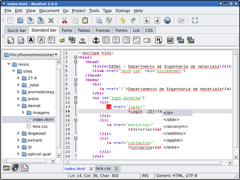 محرر Bluefish هو مشروع تطوير مفتوح المصدر ، صدر بموجب ترخيص GNU GPL.