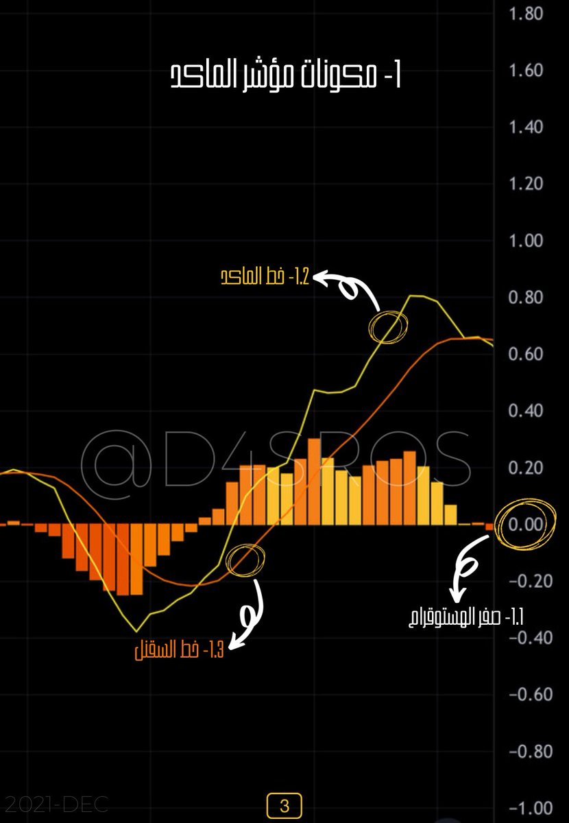 يتكون مؤشر الماكد من ثلاث مؤشرات يجب مراقبتها معًا وهم :