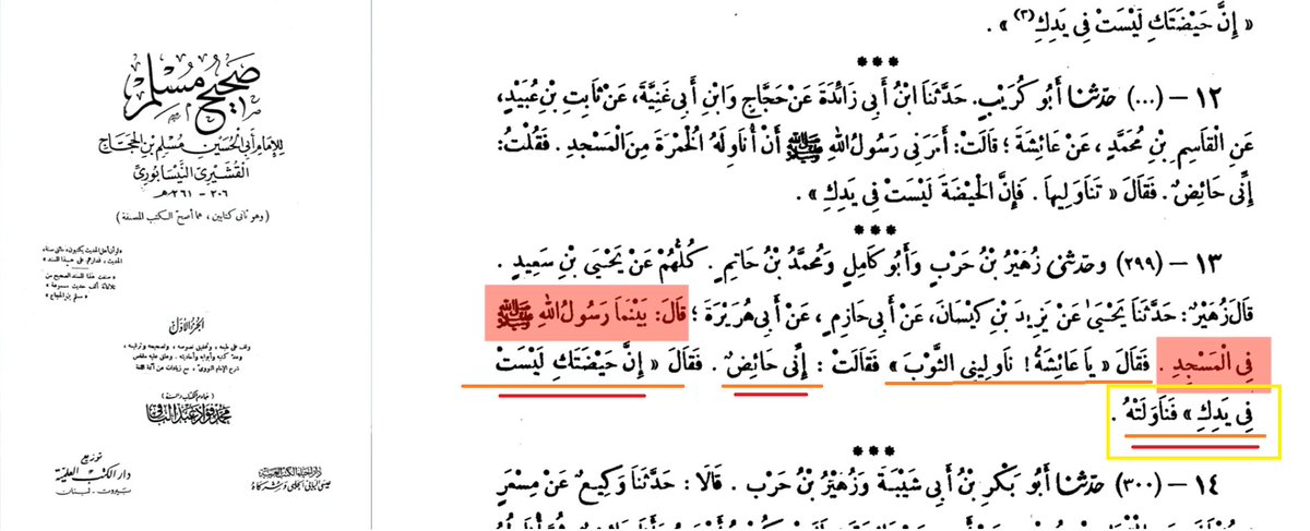 كان النبي يقرأ القران وهو متكىء في حجر السيدة عائشة وهي حائض كما انه أخذ الثوب من عائشة الحائض وهو في المسجد