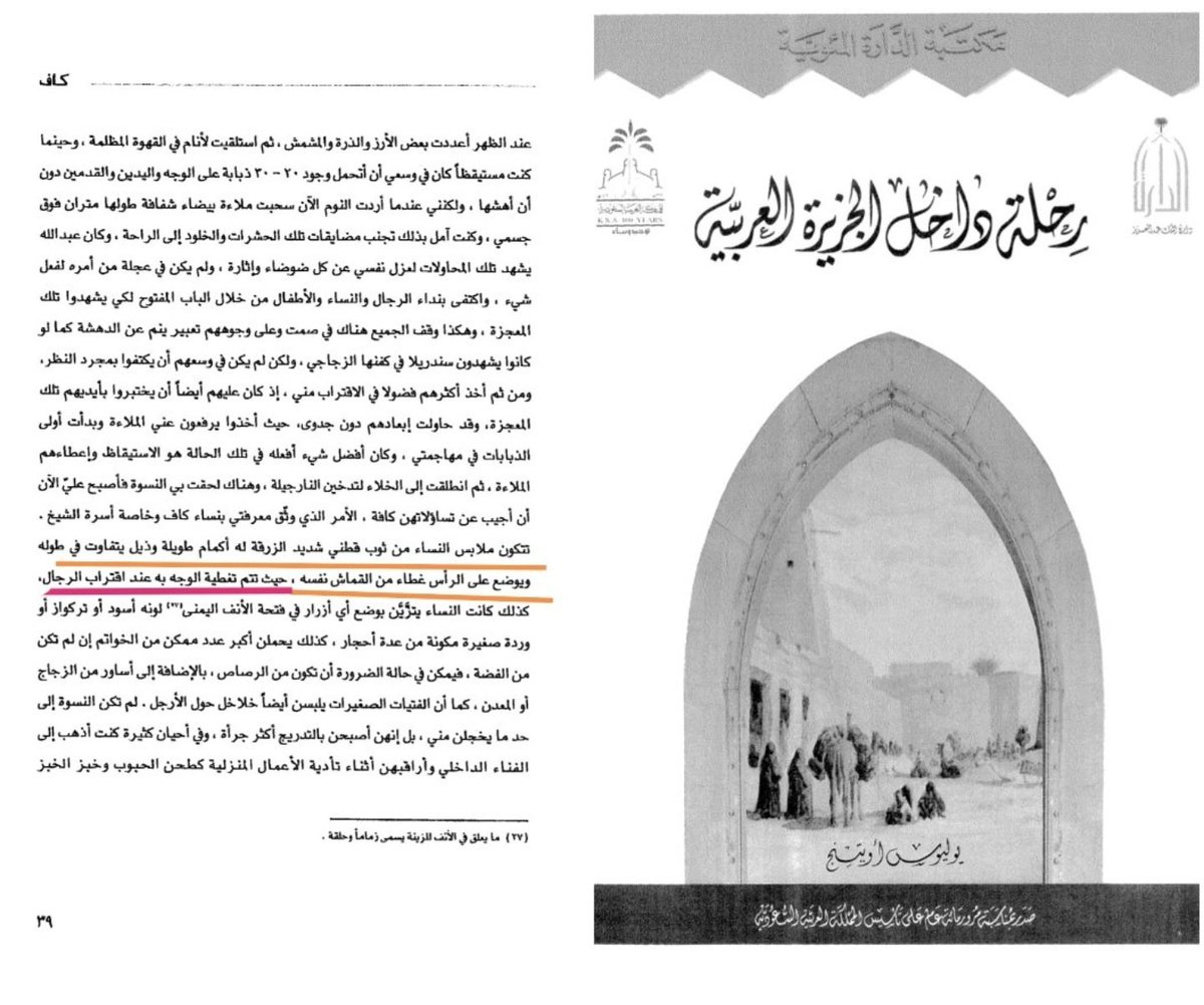 (ولم تزل عادة النساء قديماً وحديثاً يسترن وجوههن عن الأجانب )