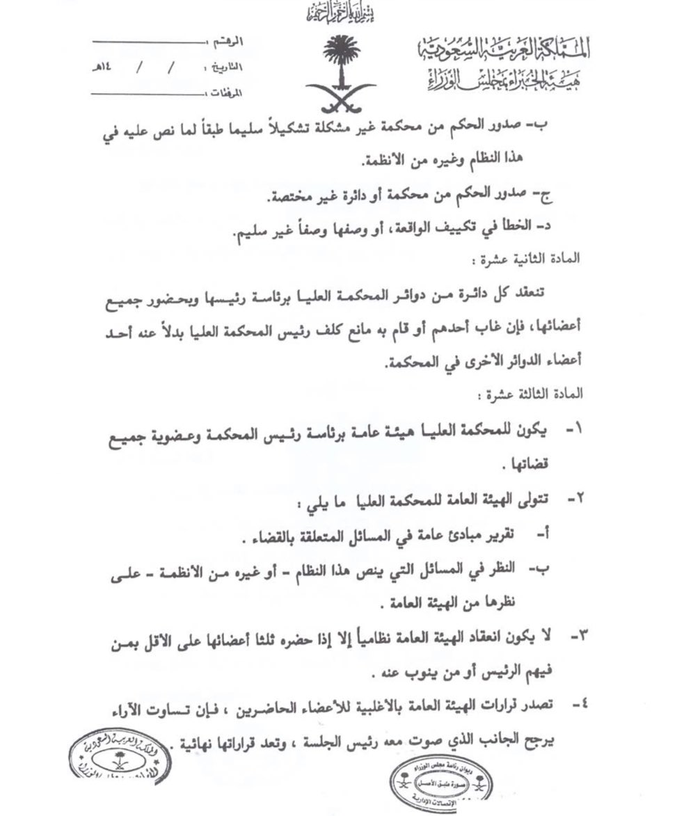 وضع نظام القضاء السعودي وفقا لمادته 13 أن المبدأ هو ما قررته المحكمة العليا ابتداء أو ما يستخلص من عمل المحاكم وسيرها على قاعدة معينة عند فصلها في النزاع مما استقر عليه عملها وأيدته المحاكم الأعلى وهذا شبيه بما جرى به العمل من جهة الاعتداد به وعدم مخالفته