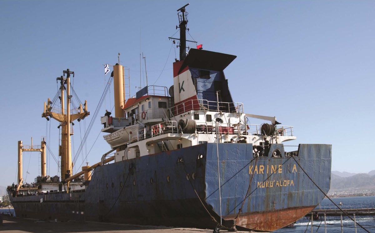 روز چهارم ژانویه وزارت دفاع اسرائیل سراسیمه یک کنفرانس مطبوعاتی با حضور خبرنگاران «همسو» تشکیل میده و اعلام میکنه که کشتی رو توقیف کرده که حامل پنجاه تن اسلحه از ایران برای جنبش فتح بوده. استغفرالله 🙄۱۹