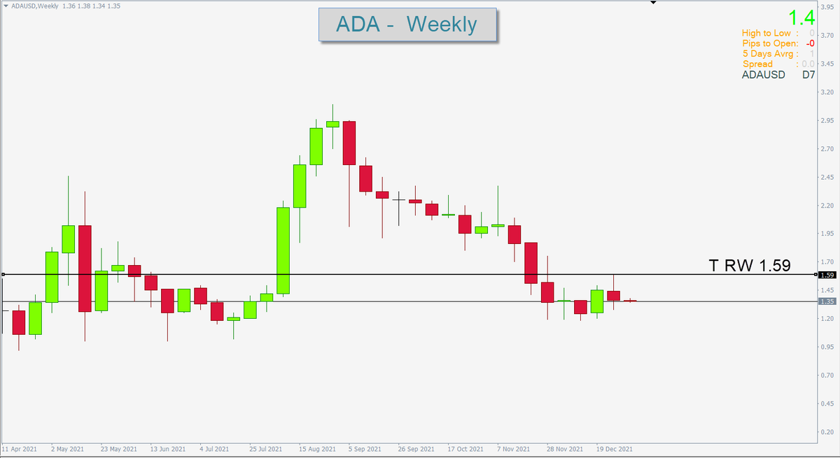 عملة ADA :: الاتجاه العام هابط ( لذلك يمنع الشراء إلا اذا تحقق شرط الإغلاق الإيجابي اعلى المقاومة التقليدية الاسبوعية 1.59 ) مع تفعيل وقف الخسارة .. عدا ذلك لا تغامر بالشراء مالم يتحقق هذا الشرط كون الاتجاه ذاهب للهبوط .