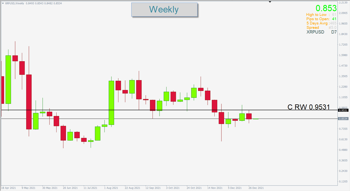 عملة XRP :: الاتجاه العام هابط ( كون المقاومة المركزية الاسبوعية 0.9531 تسيطر على الاتجاه ) وبتالي يُمنع الشراء تحت هذه المقاومة اذا تحقق شرط الاغلاق الايجابي اعلى المقاومة حينها يمكن الشراء مع تفعيل وقف الخسارةعدا ذلك لاتغامر بشراء