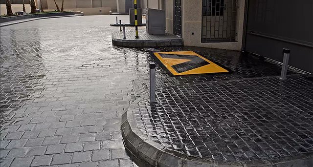 هي عبارة عن خرسانة 10 سم مسلحة تسليح خفيف يتم تشكيلها بطبعات خاصة وتلوينها حسب الطلب.