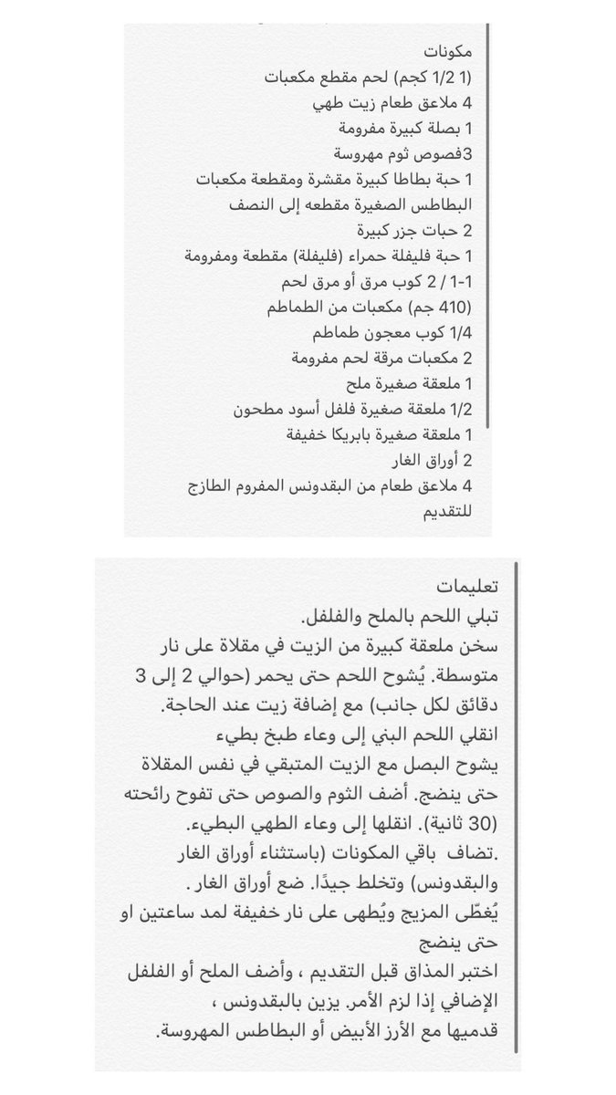 لحم مع الخضار يقدم مع الرز الابيض 🍚