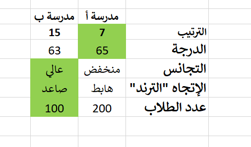 ولأن اختيار المدرسة يعتمد على معلومة التبنؤ للأعوام القادمة فإن الاعتماد على درجة العام الأخير للمدرسة ربما يكون غير كافي ، في المثال الذي ذكرناه سابقاً خيار مدرسة ب أفضل على الرغم من أن درجتها أقل ولكن ترند المدرسة صاعد ومن المتوقع أن تتجاوز مدرسة أ في السنوات القليلة القادمة