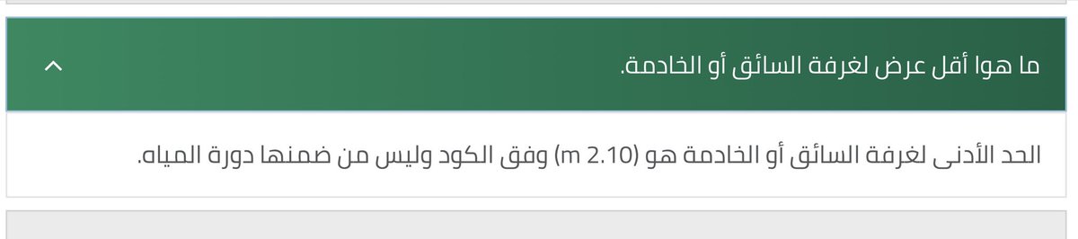 الحد الادنى لعرض اي غرفة 210سم، بما فيها غرفة السائق و العاملة المنزلية.