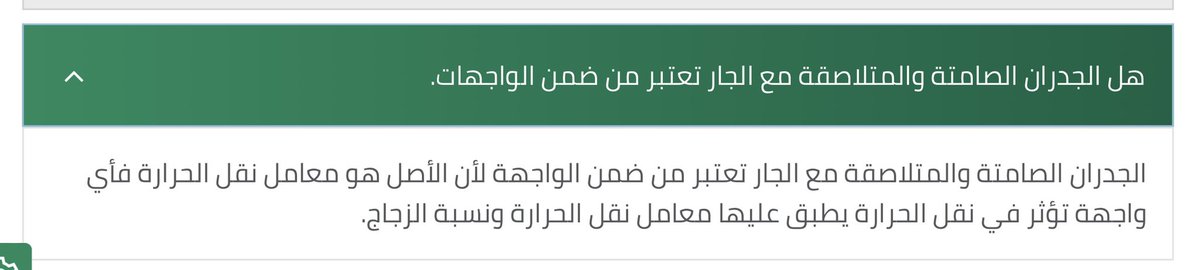 يلزم تنفيذ العزل الحراري لجميع الجدران الخارجية ، بما فيها الجدران المبنية على الصامت او الملاصقة لـ الجار .