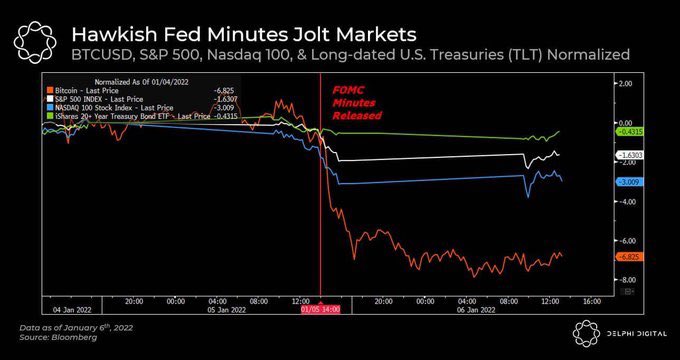 تم إصدار محضر اجتماع اللجنة الفيدرالية للسوق المفتوحة في الساعة 2 مساءً بتوقيت شرق الولايات المتحدة أمس ، مما أدى إلى عمليات البيع الأولية. مع افتتاح اليوم وتراجع الأسعار أيضاً ، أعقب ذلك عمليات بيع وتصفية أكبر ، مما أدى إلى تفاقم التراجع.