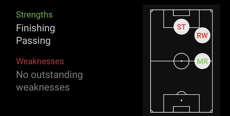 🔵جناح مقلوب..يقدم كرات قطرية (هذه الكرات معدومة في برشلونة) ويسدد من خارج منطقة الجزاء ومن اليسار هذا أيضا معدوم في برشلونة.