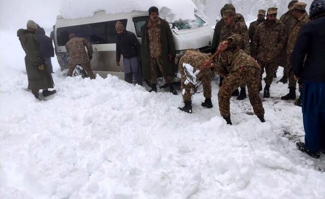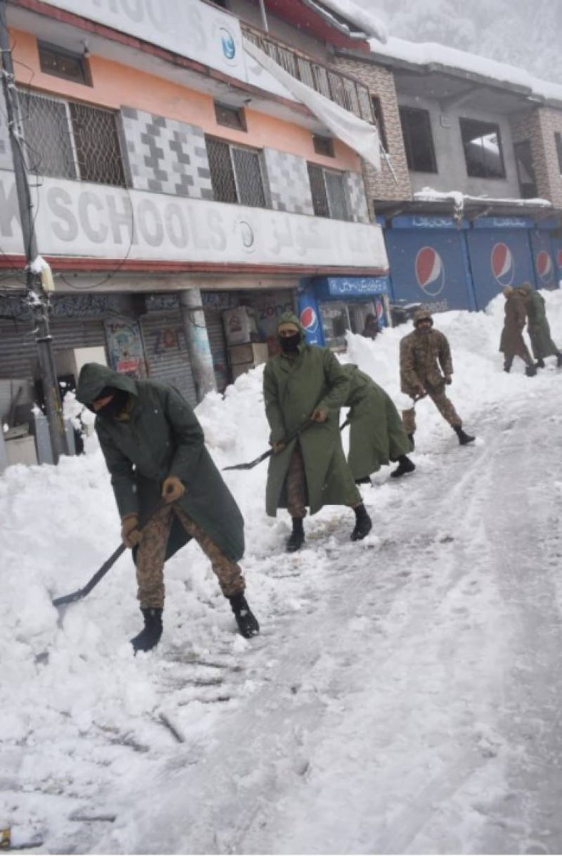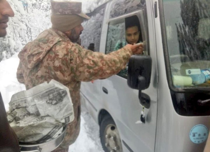 وقد نزل الجيش لاخلاء العالقين بالثلوج ولن يغادر الا بعد اخلاء المنطقة بالكامل