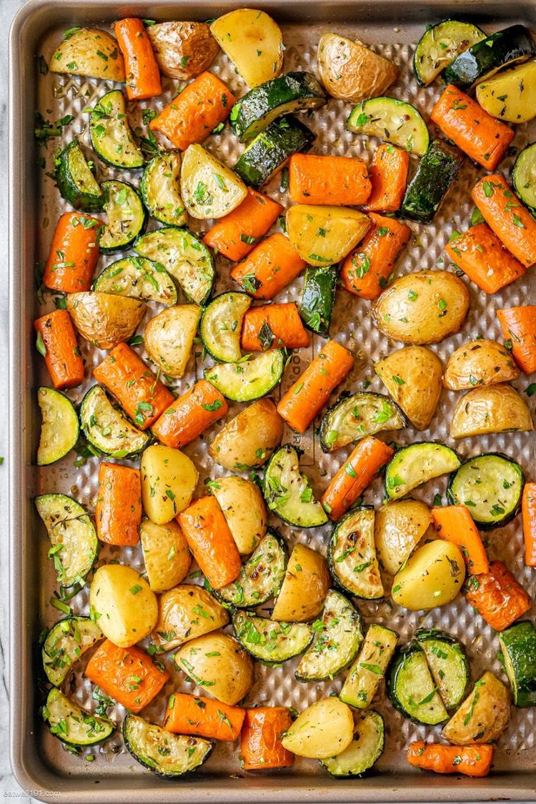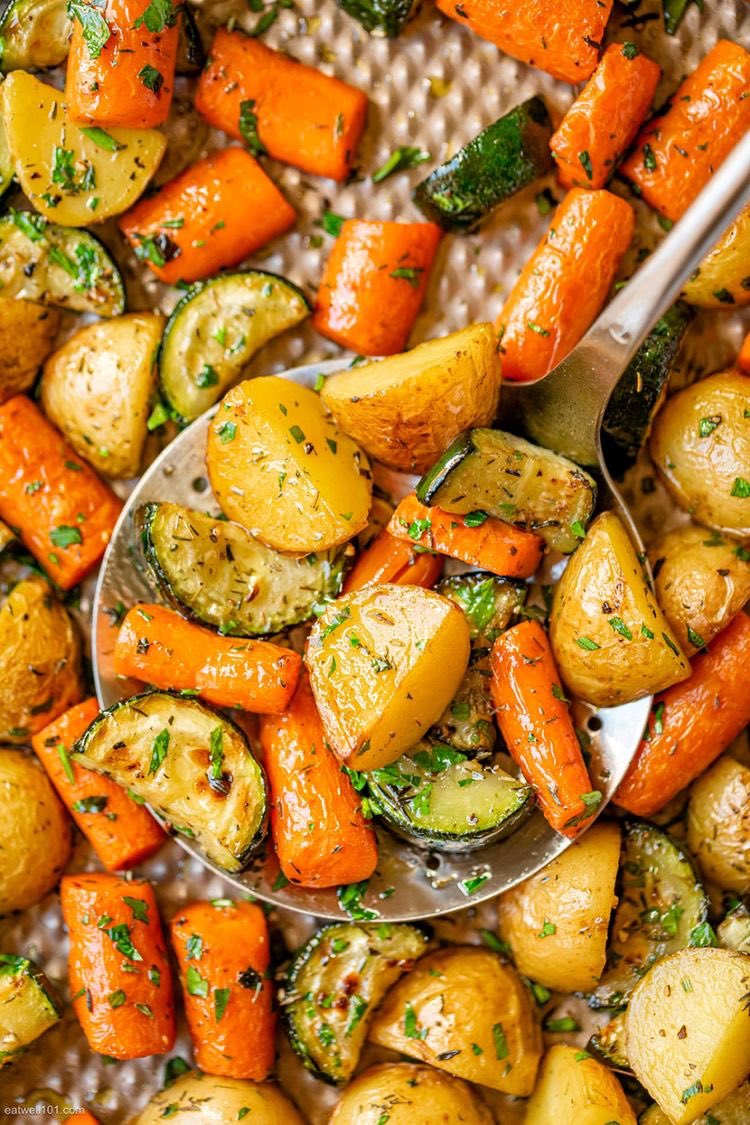 جزر وبطاطس محمصه بالاعشاب والثوم 🥔🥕