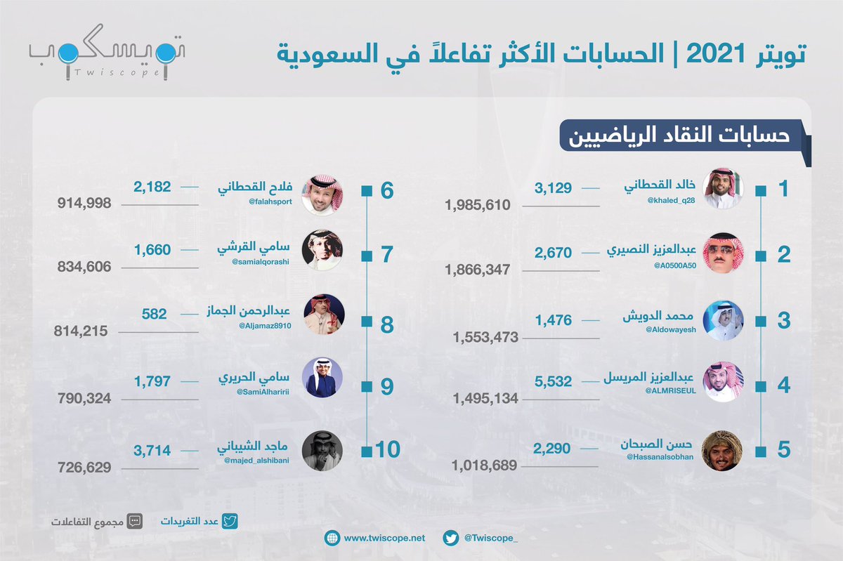 حساب الأمير عبدالرحمن بن مساعد في صدارة الترتيب .. 👏🏻🔥