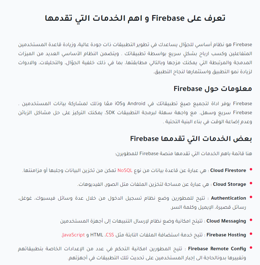 اول شي خلونا نتعرف على firebase والخدمات الي تقدمها