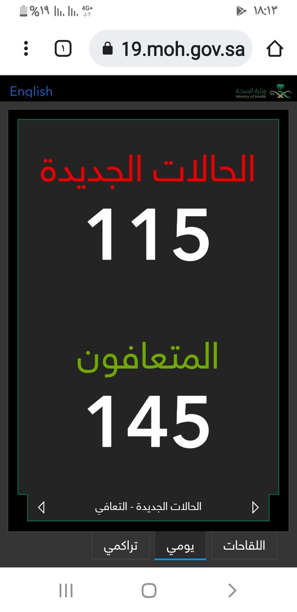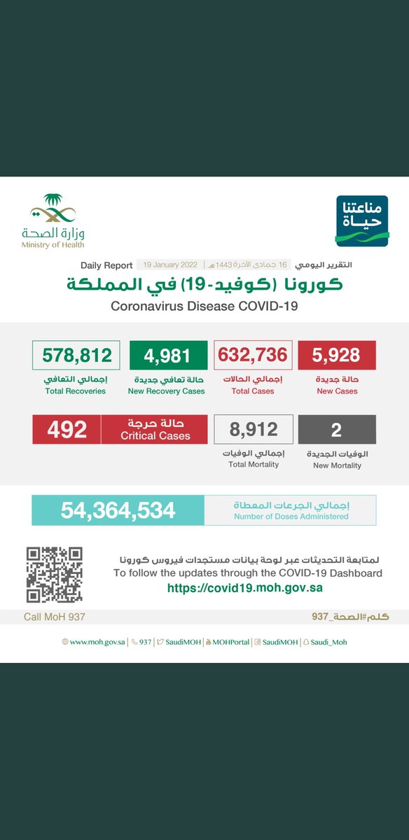 #وزارة_الصحة_السعودية تعلن الحالات الجديدة لفيروس #كورونا_الجديد (#كوفيد_19 ) المسجله ليوم السبت 19 /1443/11هـ