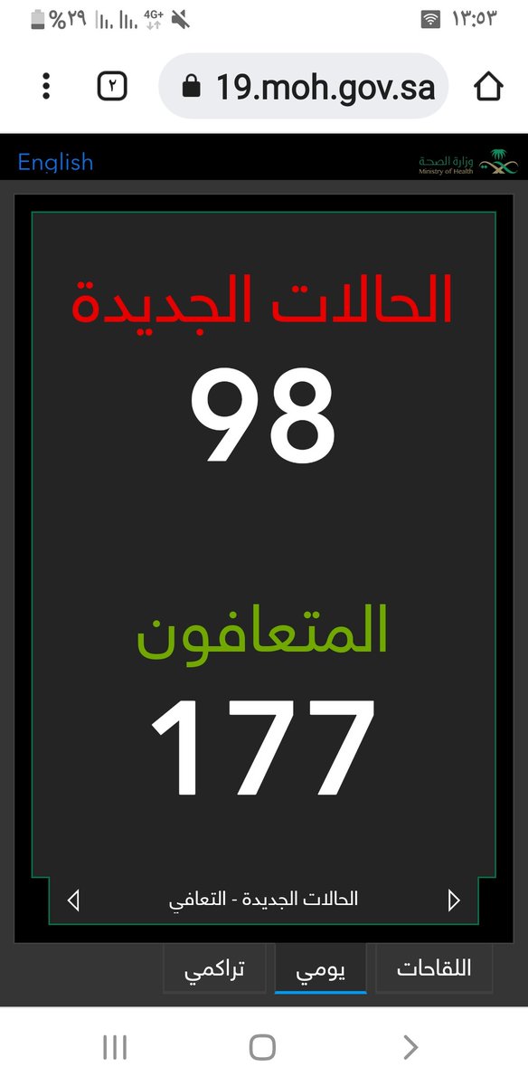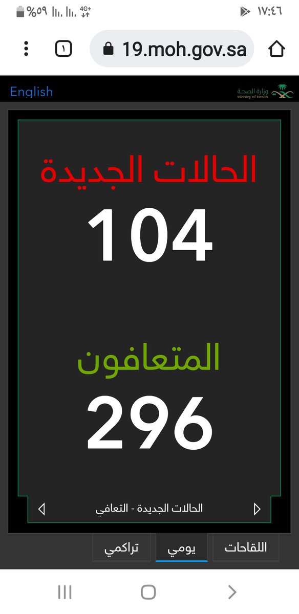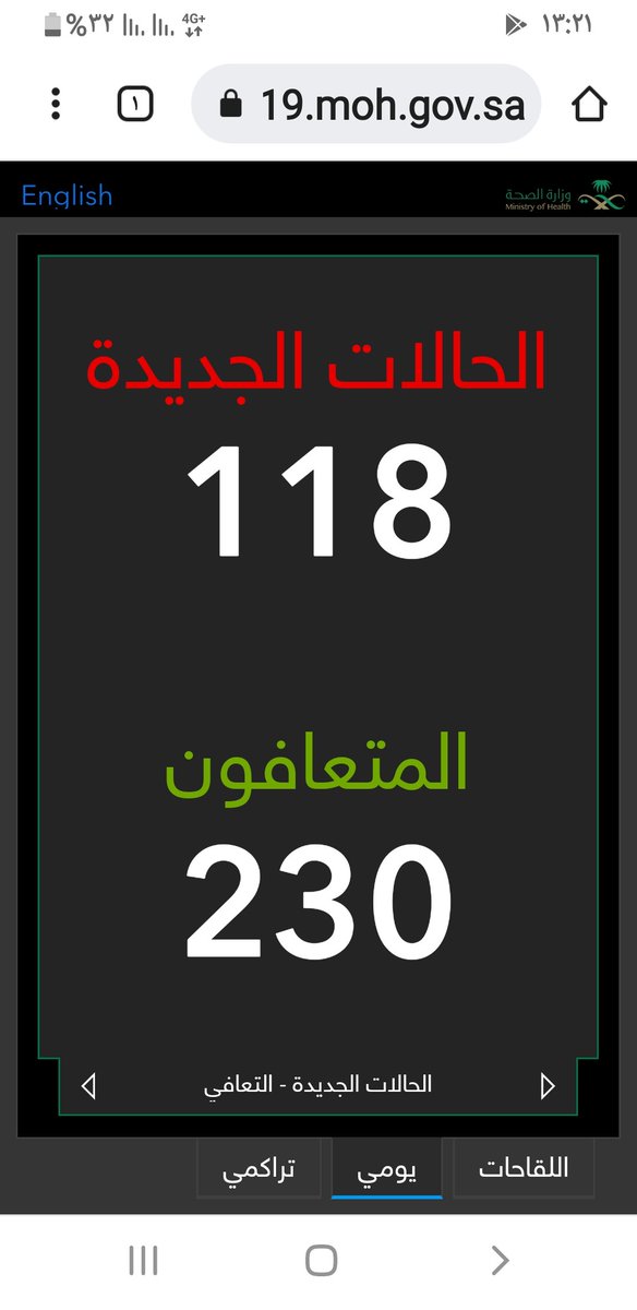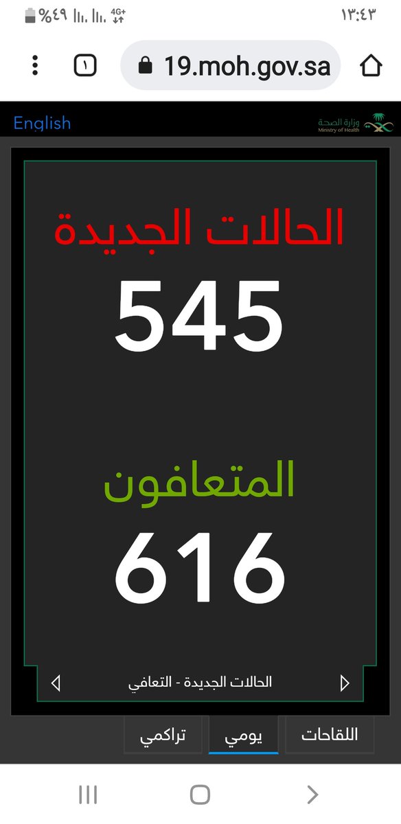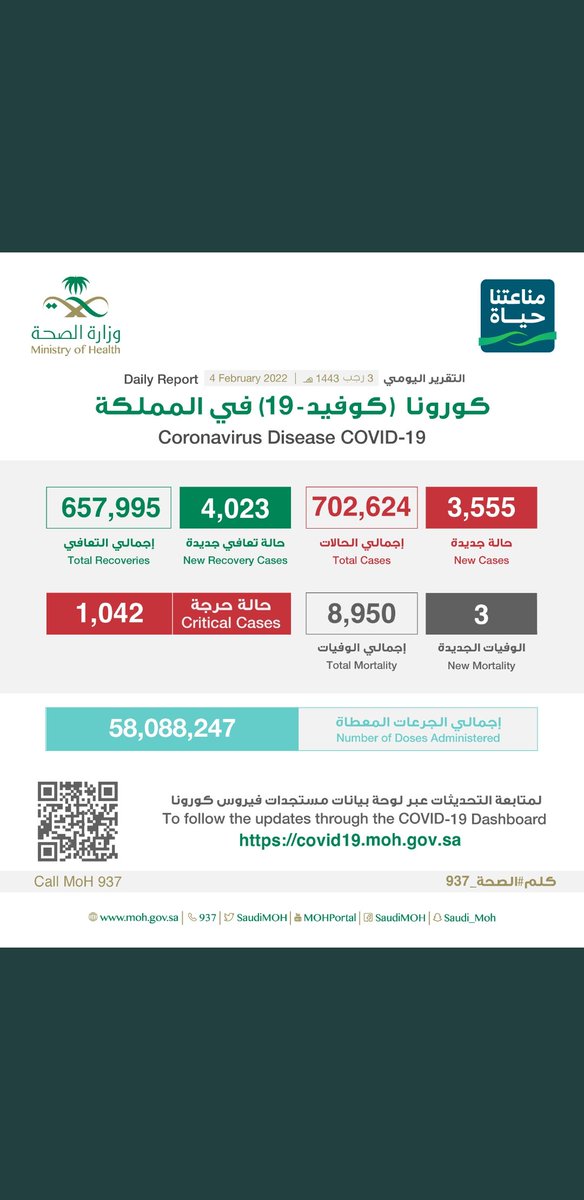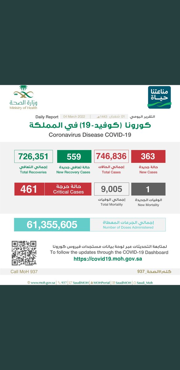 #وزارة_الصحة_السعودية تعلن الحالات الجديدة لفيروس #كورونا_الجديد (#كوفيد_19 ) المسجله ليوم السبت 4 /1443/7هـ