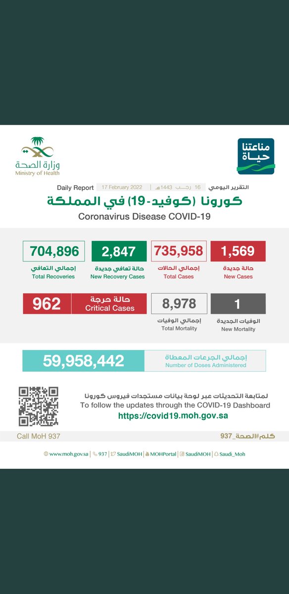 #وزارة_الصحة_السعودية تعلن الحالات الجديدة لفيروس #كورونا_الجديد (#كوفيد_19 ) المسجله ليوم الخميس 17 /1443/11هـ