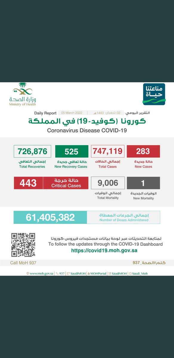 #وزارة_الصحة_السعودية تعلن الحالات الجديدة لفيروس #كورونا_الجديد (#كوفيد_19 ) المسجله ليوم الجمعه 25 /1443/11هـ